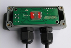 GSM/GPRS-модем, выполнен в герметичном пыле-влаго защищённом (IP65), пластиковом корпусе с фланцами для крепления к стене.Из корпуса, через гермовыводы, выходят три кабеля: RS232 (COM-порт), питание с USB-разъёмом на конце и антенна.